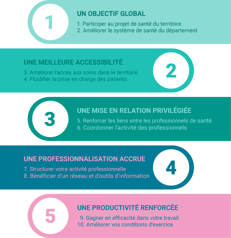 Grâce à la CPTS, vous structurerez mieux votre activité et vous bénéficierez des systèmes d’informations et des outils de communication mis en place pour ses professionnels adhérents. Votre adhésion vous permettra de gagner du temps de travail et d’améliorer vos conditions d’exercice.